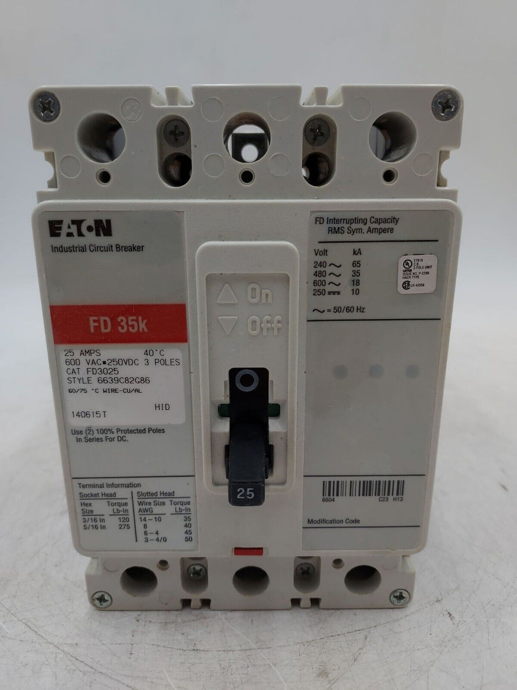 EATON CH FD3025 Circuit Breaker 25A 3P 600V 3PH FD 35k 25 Amp 3 POLE BOLT ON