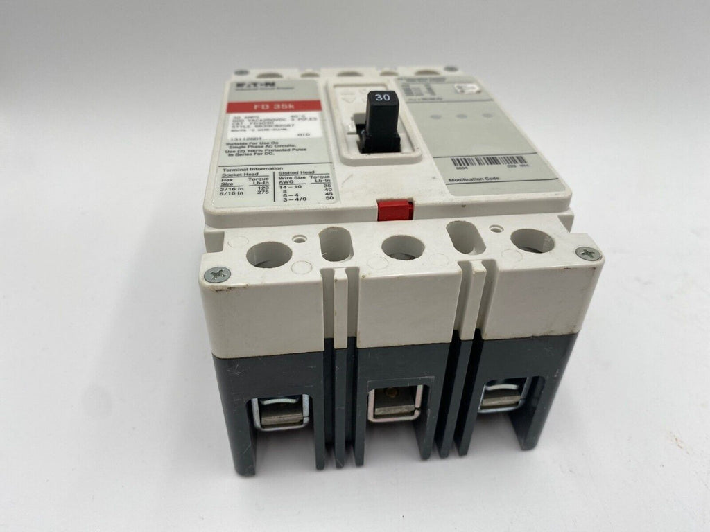 Eaton FD3030 Circuit Breaker 30A 3P 600V 3PH FD Bolt On