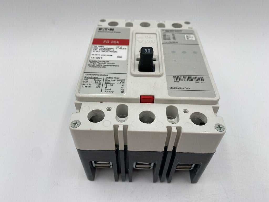 Eaton FD3030BP10 Circuit Breaker 30A 3P 600V 3PH FD 35k 30 Amp 3 Pole Bolt On FD3030 Condition Notes: