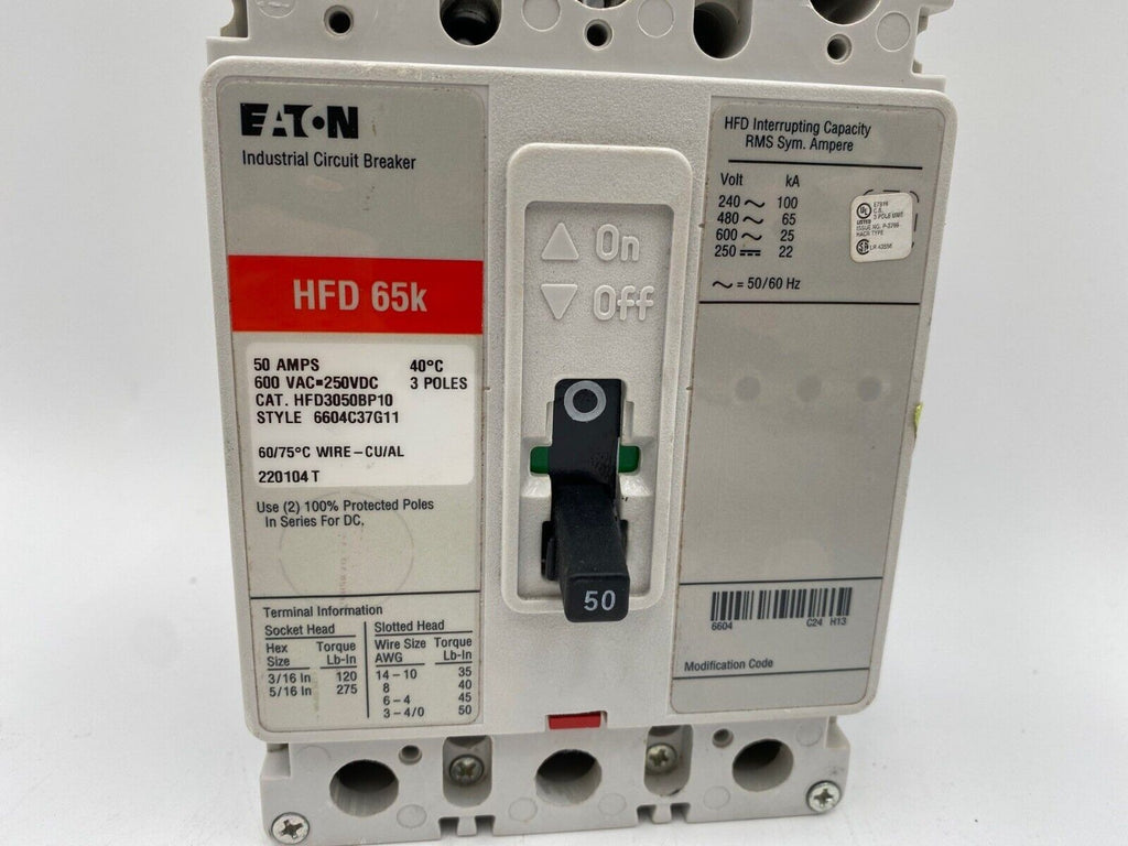 Eaton HFD3050BP10 Circuit Breaker 50A 3P 600V 3PH HFD Bolt On