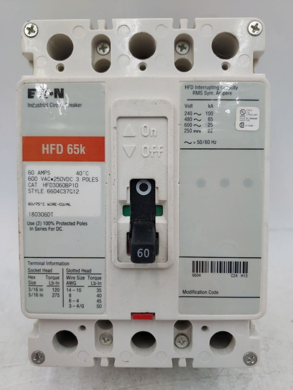 EATON CH HFD3060BP10 Circuit Breaker 60A 3P 600V HFD 65k 60 Amp 3 POLES BOLT ON
