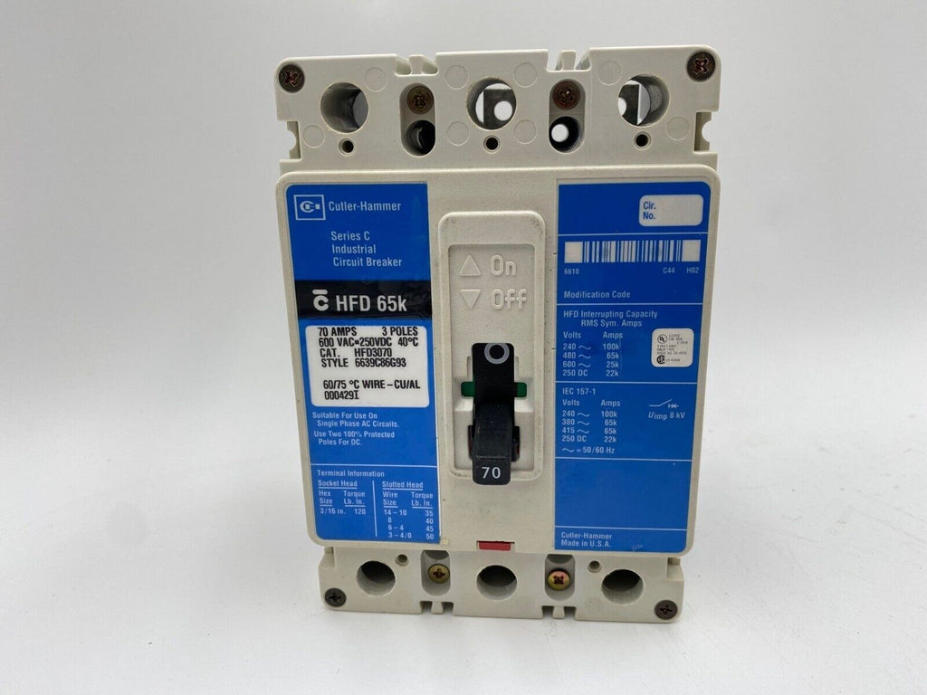 Eaton HFD3070 Circuit Breaker 70A 3P 600V 3PH HFD Bolt On