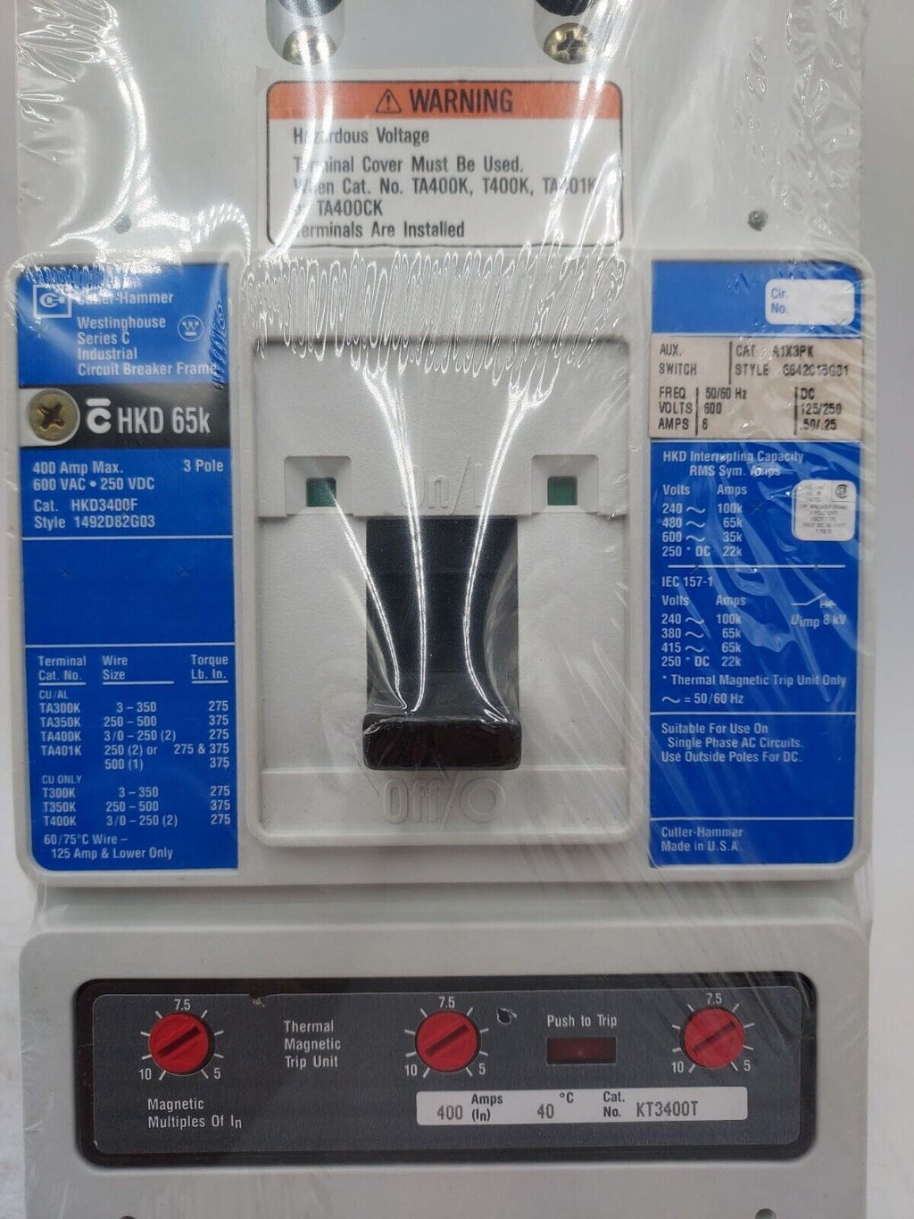 EATON CH HKD3400 Circuit Breaker 400A 3P 600V 3PH Trip KT3400T 400 Amp 3 Pole A1X3PK AUX SWITCH BOLT ON