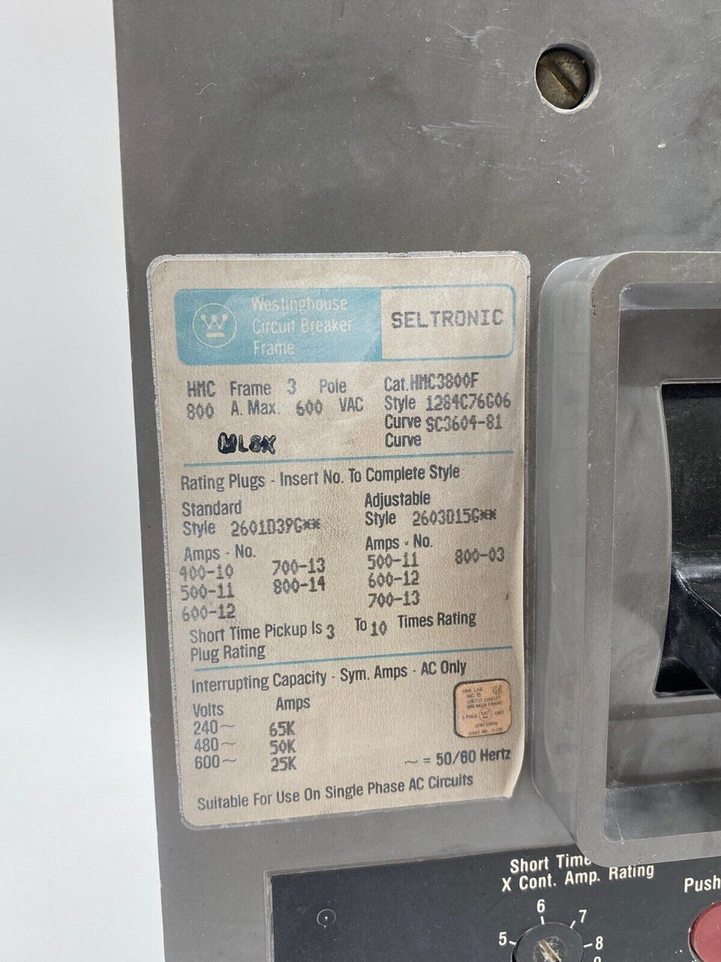 Eaton HMC3800F Circuit Breaker 800A 3P 600V 3PH HMC Bolt On