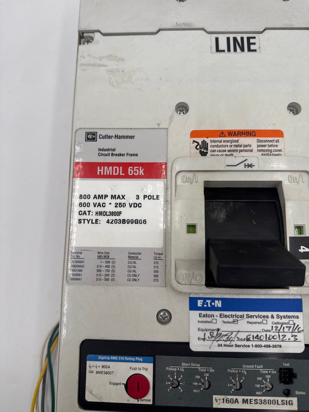Eaton HMDL3800 Circuit Breaker 800A 3P 600V HMDL 65k 800 Amp 3 Pole LSIGMES3800LSIG