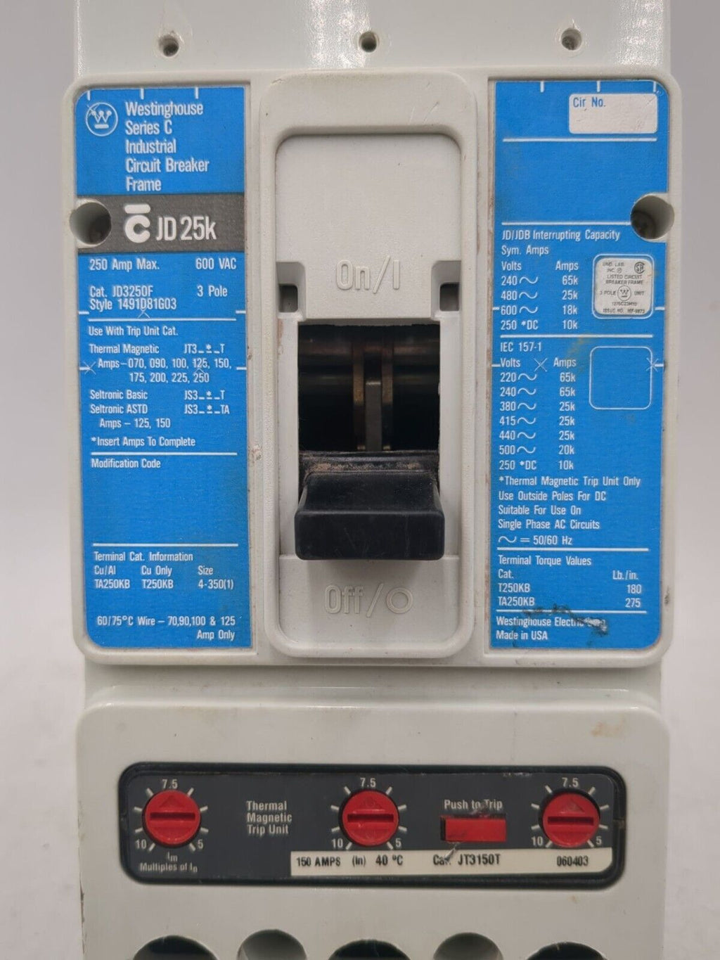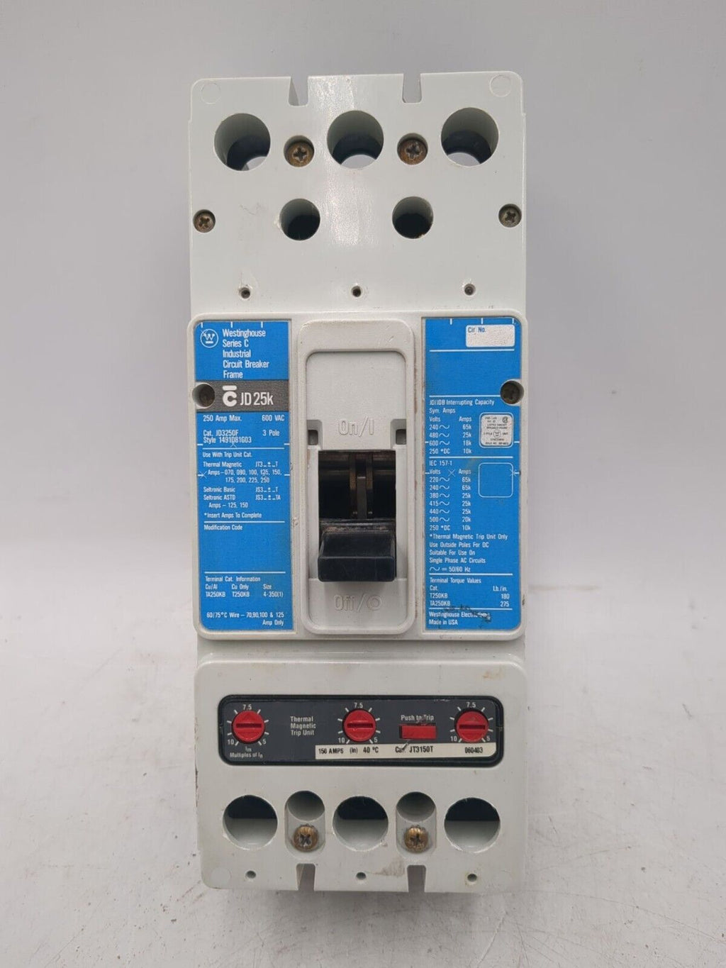 Westinghouse JD3250 Circuit Breaker 150A 3P 600V JT3150T Trip 150 Amp