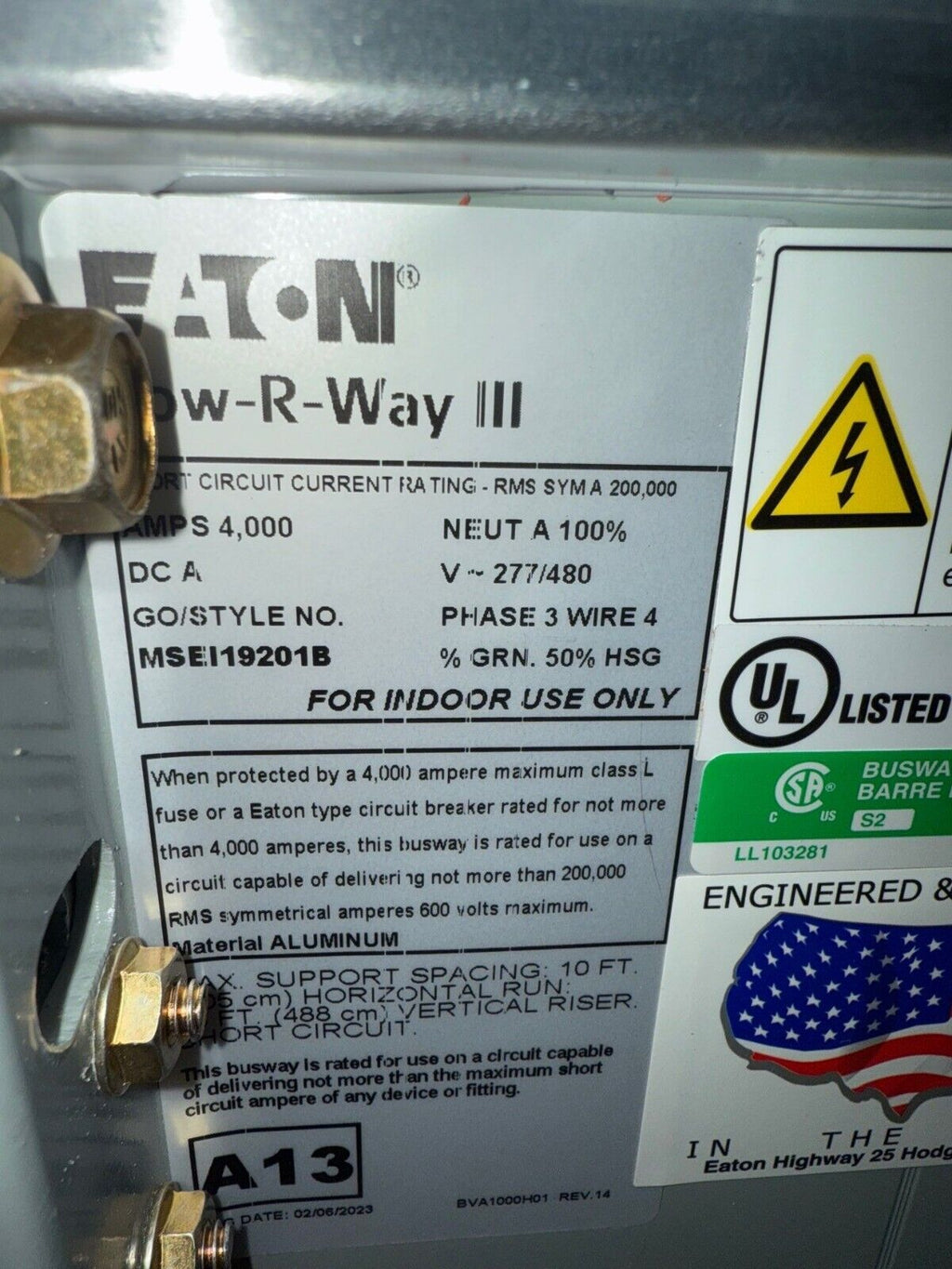 Eaton Pow-R-Way III Busway Section 4000A 277/480V 3PH 4W MESI1201B 4000 Amp Bustap