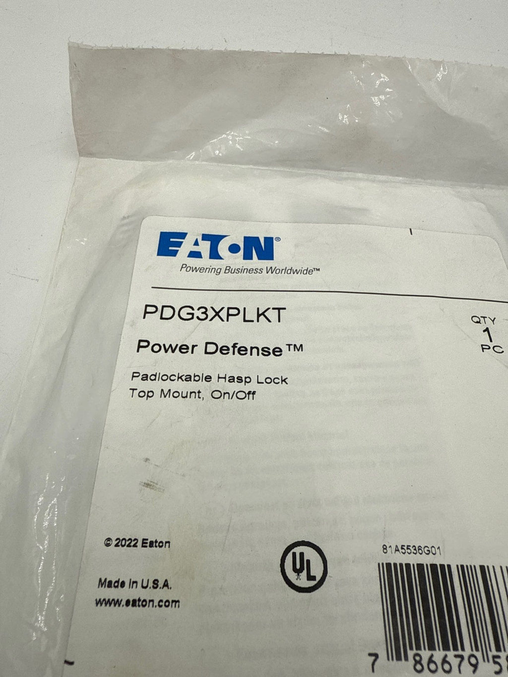 Eaton PDG3XPLKT Breaker Padlock Hasp Power Defense Padlockable Hasp Lock Top Mount On/Off
