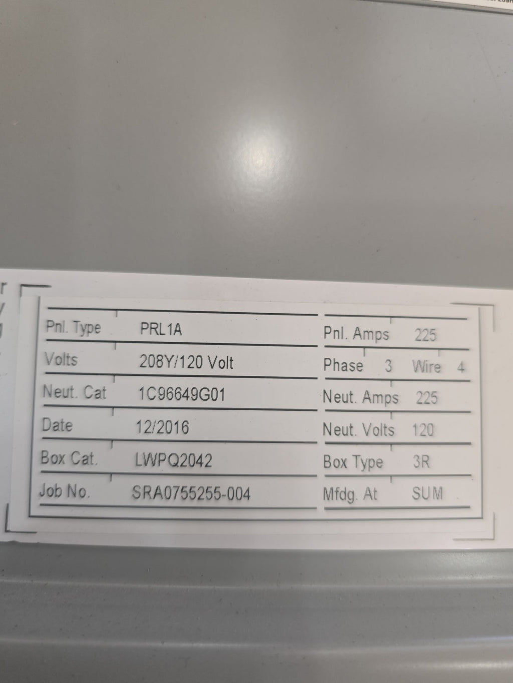 Eaton PRL1A Panelboard 225A 208Y/120V 3PH 4W 42 Space 3R Encl MLO Outdoor