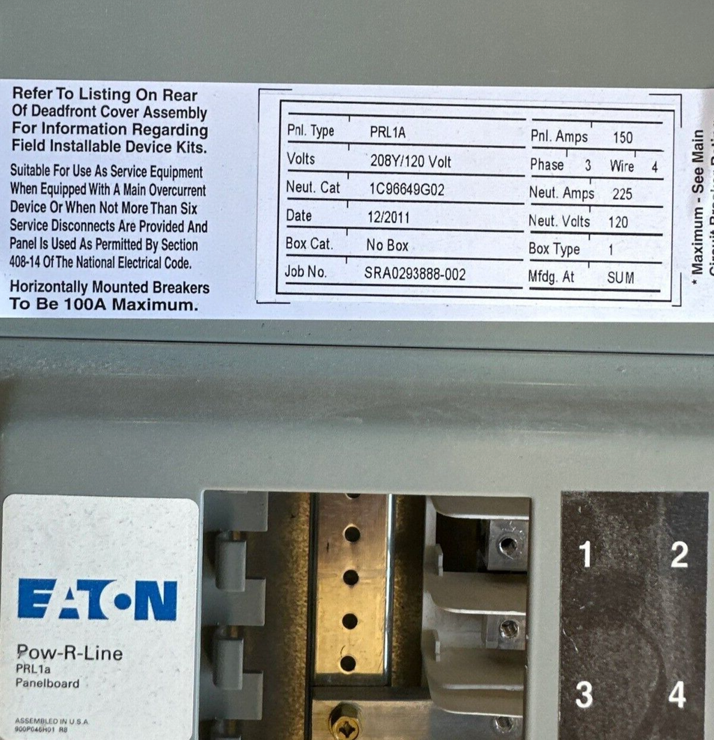 Eaton PRL1A Pow-R-Line Panelboard 150A 208Y/120V 3PH 4W Indoor Encl 42 Cir MCB P530 Used