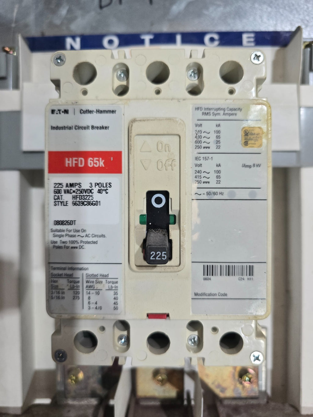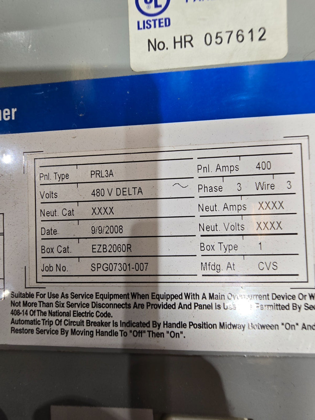Eaton PRL3A Panelboard 400A 480V 3PH 3W MCB 400 Amp Panel HFD3225 225 Amp