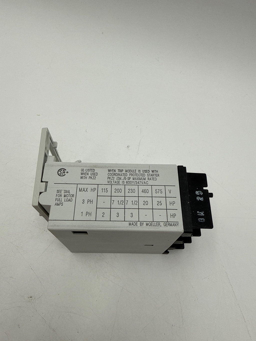 Eaton ZM-25-PKZ2 Motor Protection Trip Block 16-25A Thermal Range 200-350A Adjustable Magnetic Trip3 PHASE7.5 HP @ 230 VAC20 HP @ 460 VAC