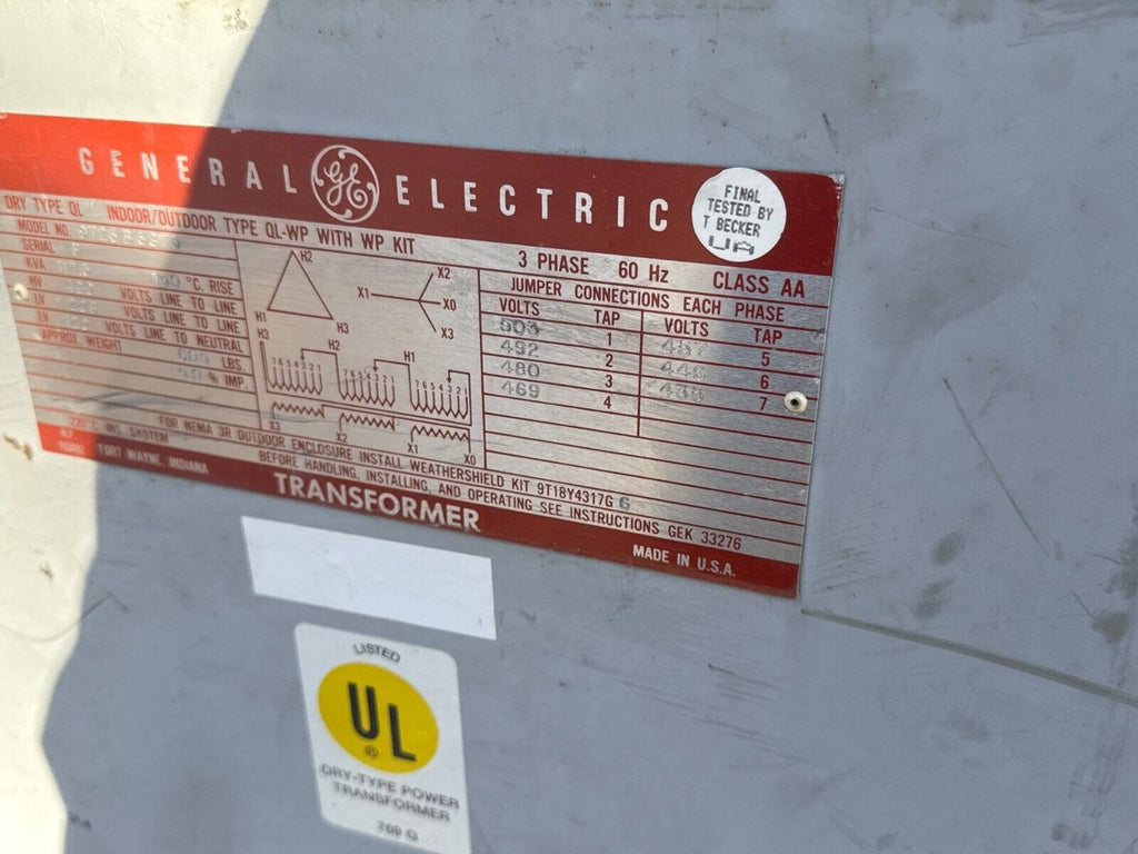 112.5KVA GE 9T23B3875 Transformer Pri 480V Sec 208/120V 3PH Indoor Encl Class AA Weight: 605lb T220