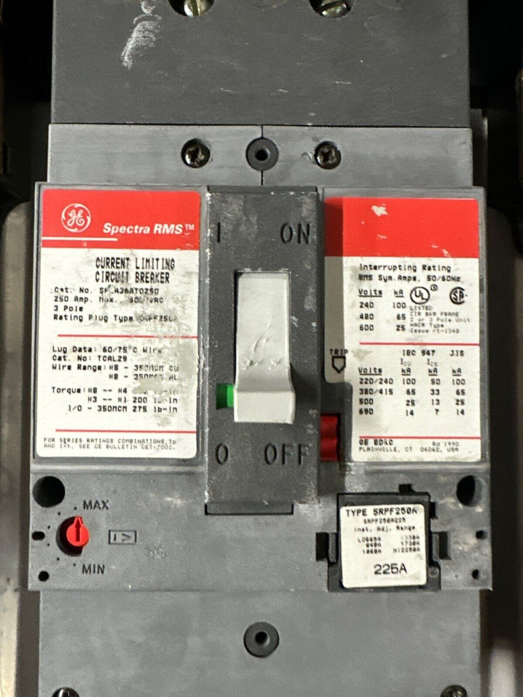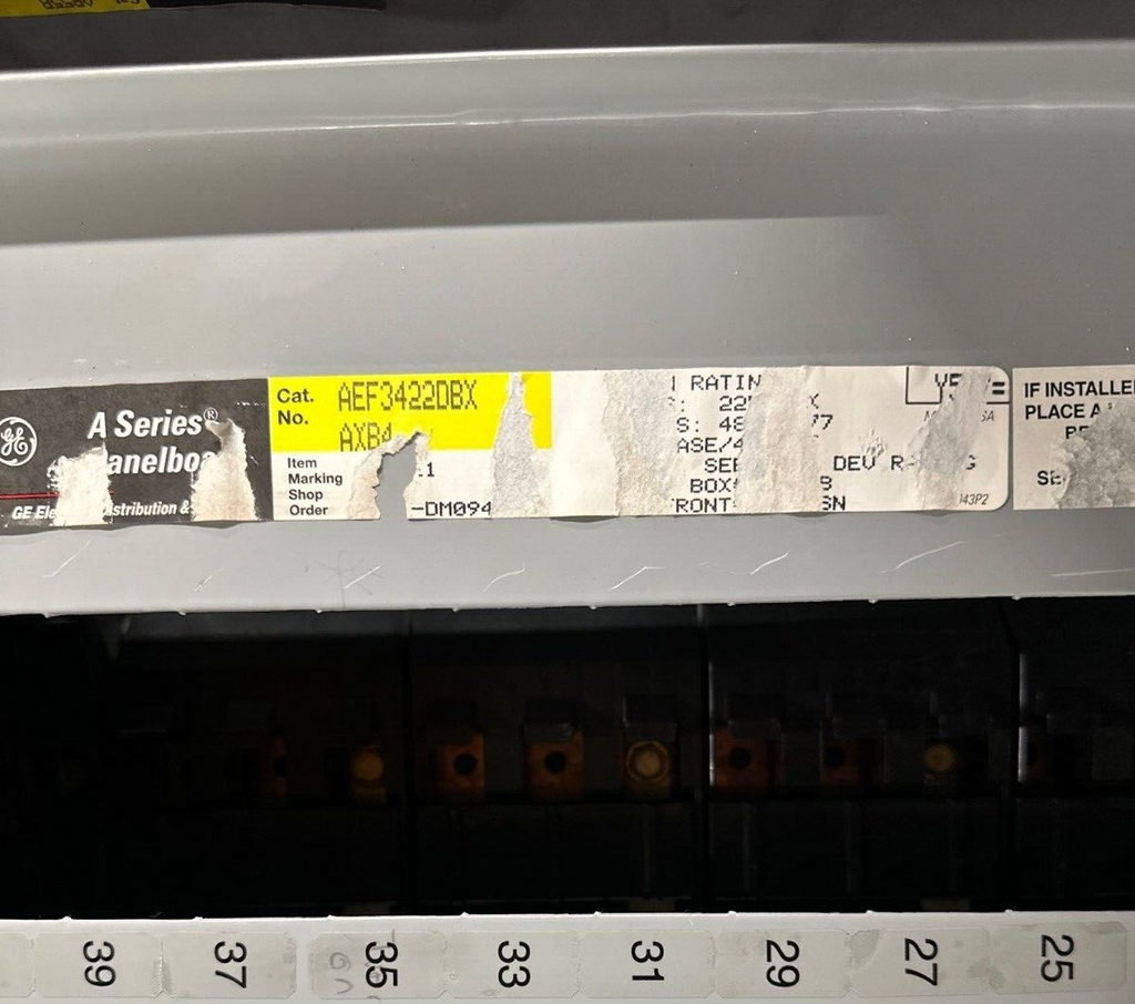 GE AEF3422DBX Panelboard 225A 480Y/277V 3PH 4W Indoor Encl 42 Circuit MCB AB55B Box: AB55B 55.5" x 20" x 6" Main Breaker: SFLA36AT0250 P043