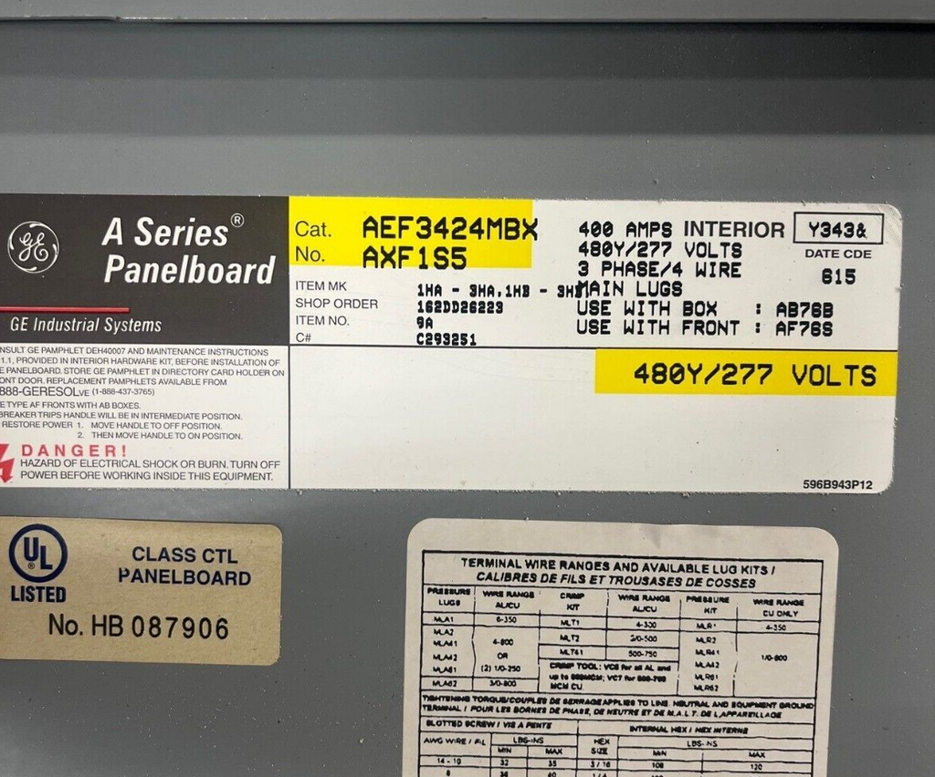 GE AEF3424MBX Panelboard 400A 480/277V 3PH 4W Indoor Encl 42Cir MLO SFHA36AT0250 P573 Used