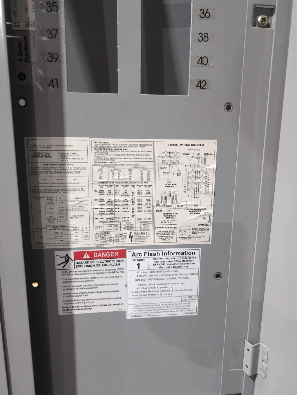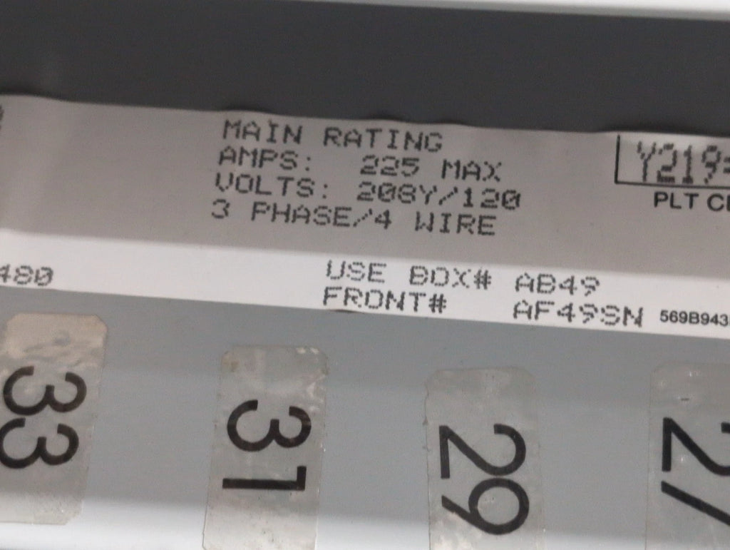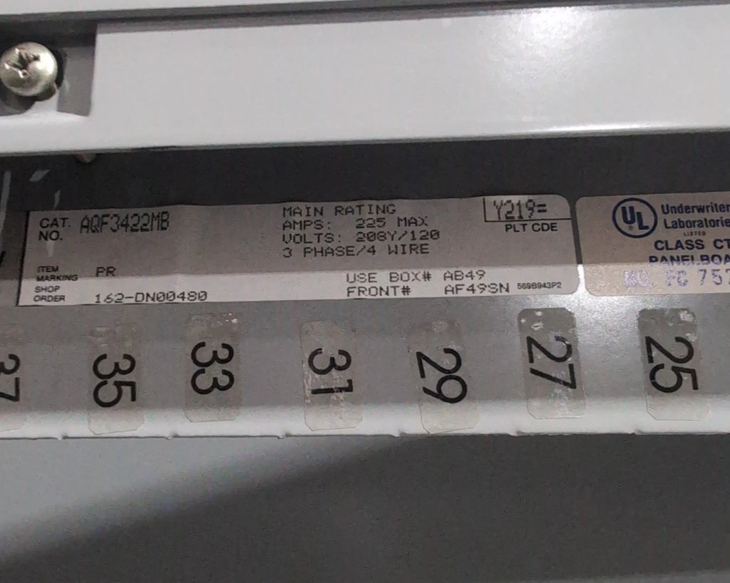 General Electric GE AQF3422MB Panelboard 225A 208/120V 3PH 4W 42 Cir MLO Panel 225 Amp AB49