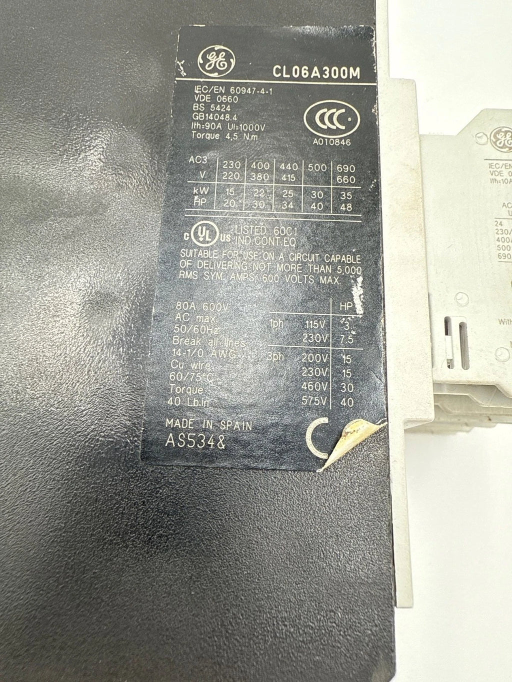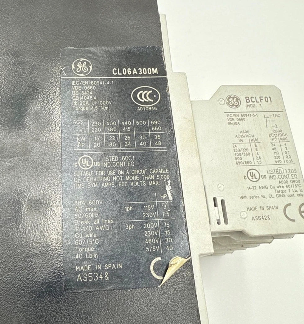 GE CL06A300M Contactor 80A 3P 600V 3PH 40HP Coil 110/120V Aux Contact BCLF01