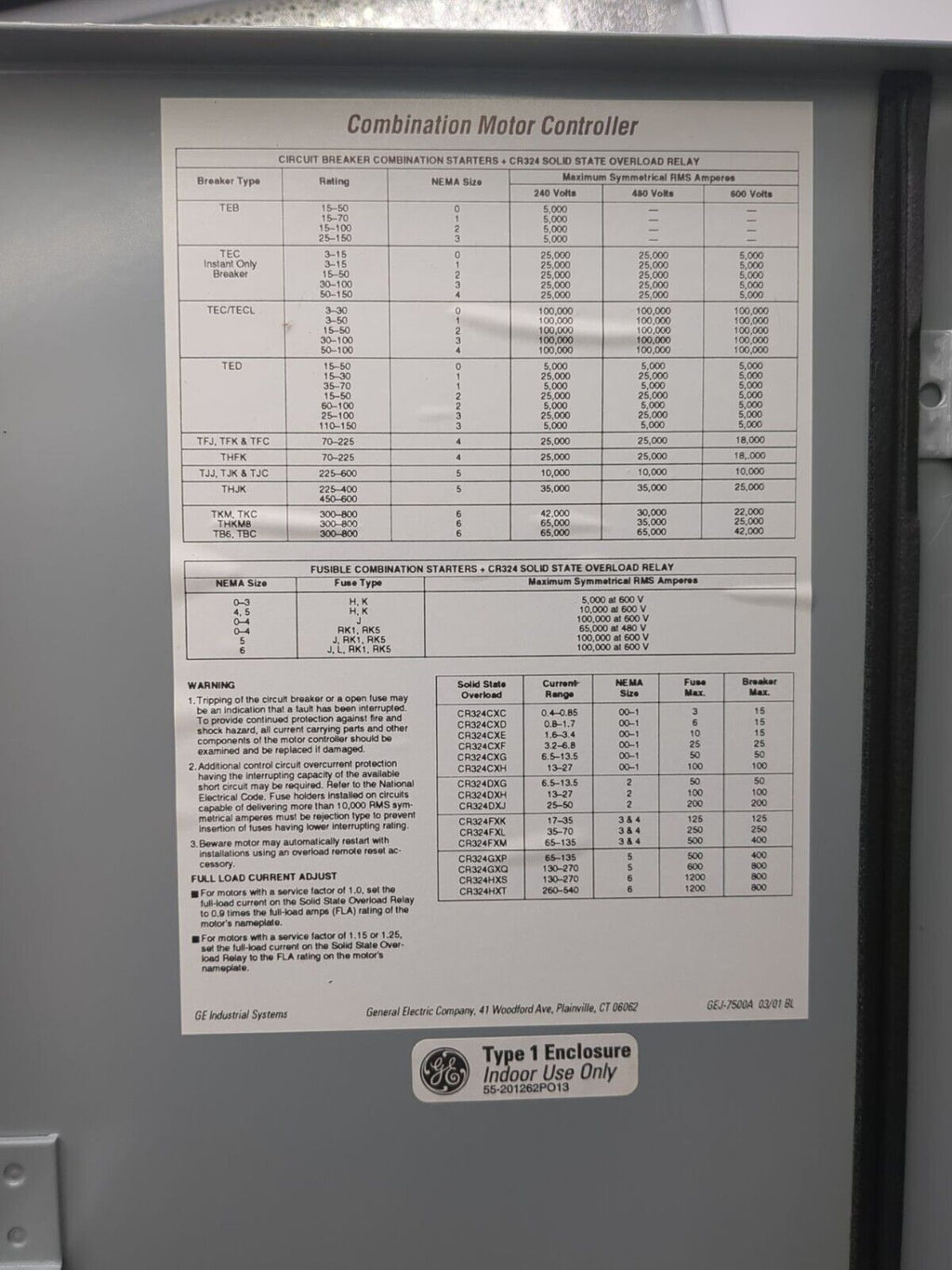 GE CR308D1042WXDTLDH, NEMA 1, 3 Pole, Magnetic Starter Combination,