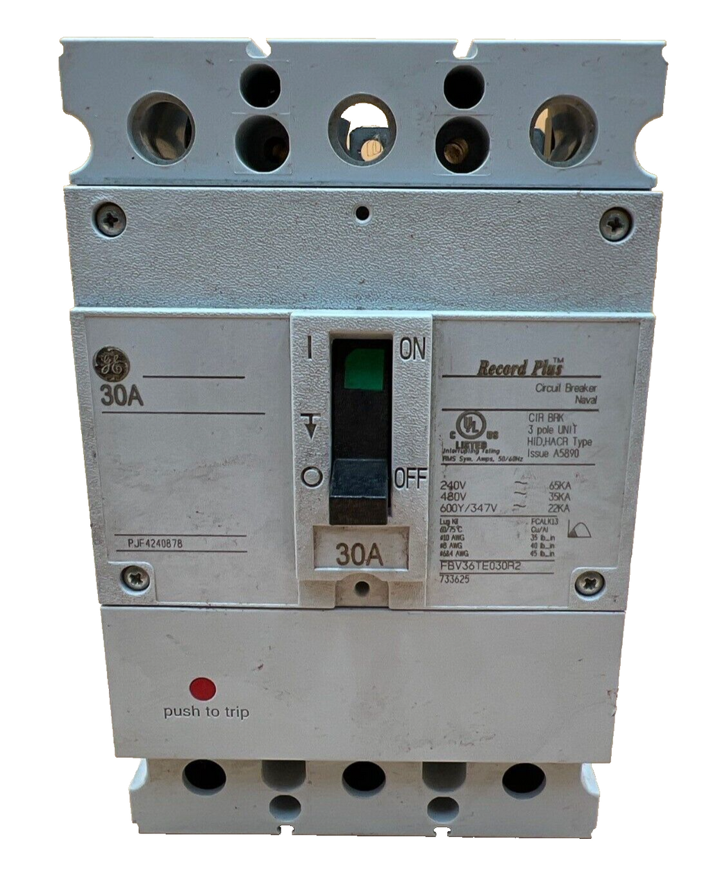 GE FBV36TE030R2 Circuit Breaker 30A 3P 480V 3PH Bolt on