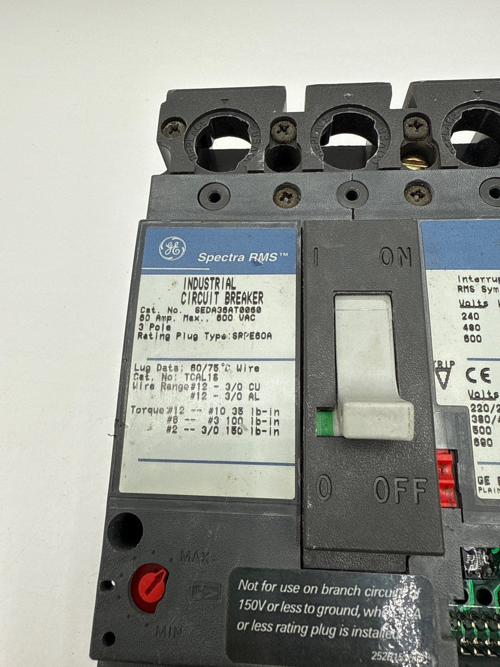 GE SEDA36AT0060 Circuit Breaker 60A 3P 600V Frame 60 Amp 3 Pole NO PLUG