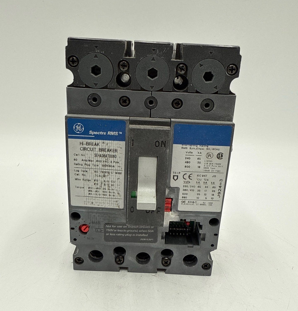 GE SEHA36AT0060 Circuit Breaker Frame 60A 3P 600V SEHA 60 Amp 3 Pole NO PLUG