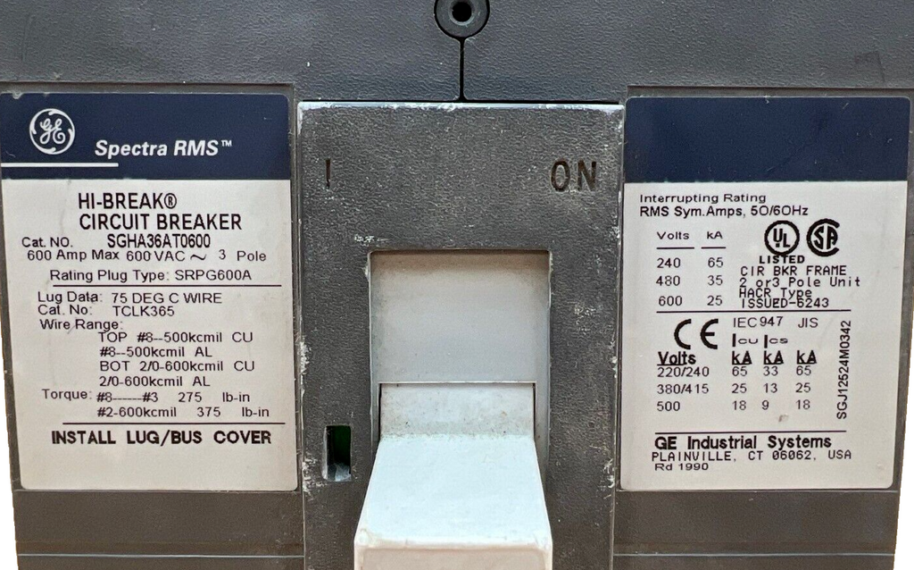 General Electric SGHA36AT0600 600A 600V 3P Lug to Lug Circuit Breaker