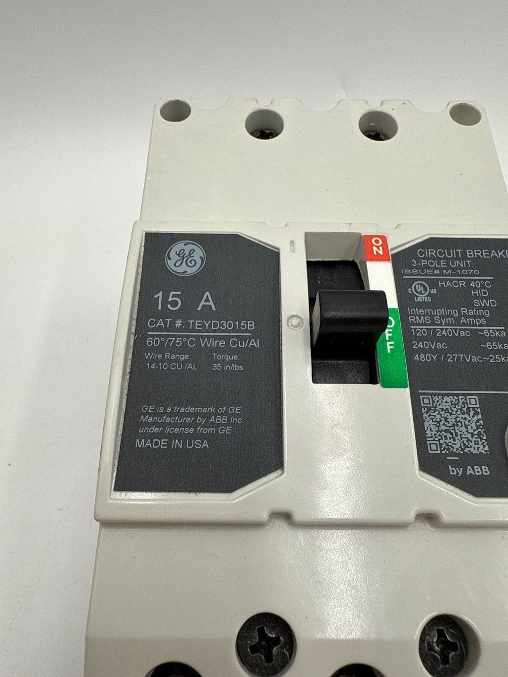 General Electric GE TEYD3015B Circuit Breaker 15A 3P 480/277V 3PH TEYD 15 Amp 3 Pole Bolt On