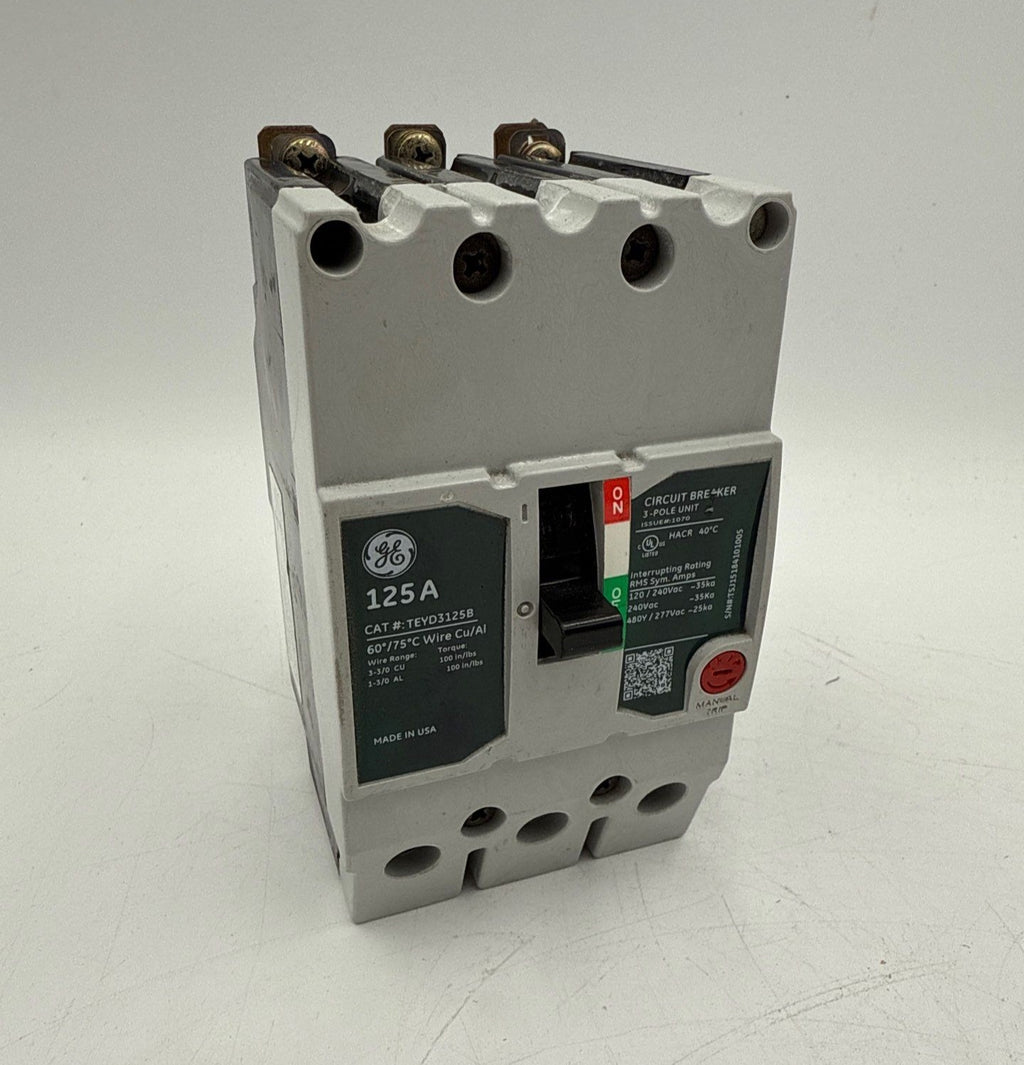 General Electric GE TEYD3125B Circuit Breaker 125A 3P 480/277V 3PH TEYD 125 Amp 3 Pole Bolt On