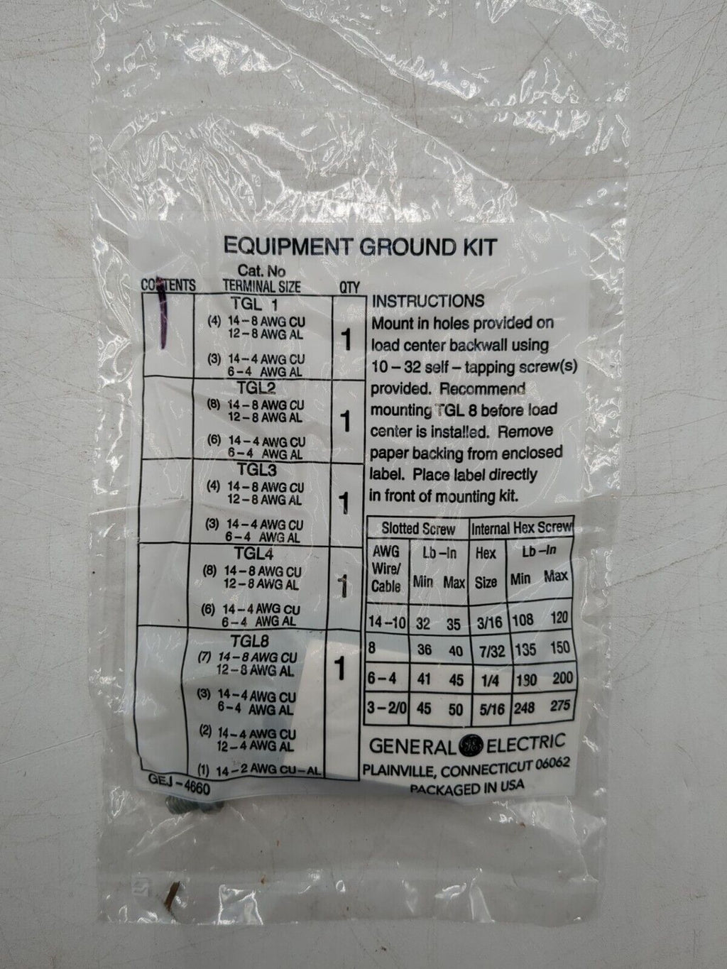 General Electric GE TGL1 Equipment Ground Kit Type TGL/TGC Kit,