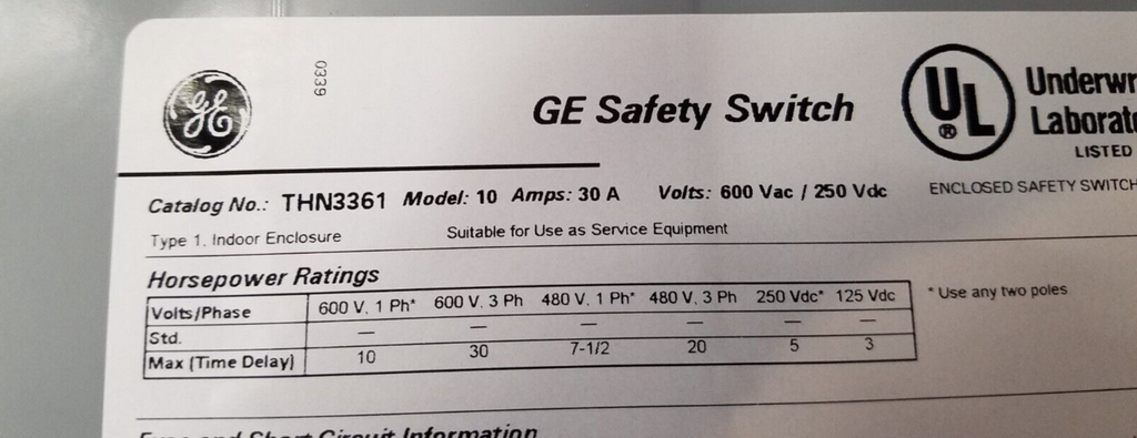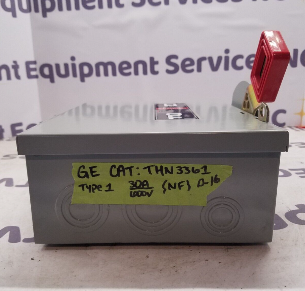 GE THN3361 Safety Disconnect Switch 30A 3P 600V 3PH NEMA 1 Indoor