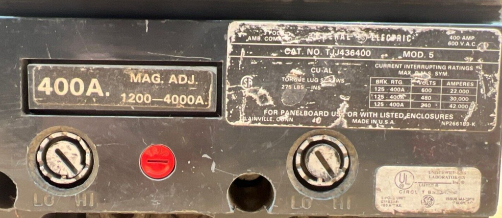 GE TJJ436400 Circuit Breaker 400A 3P 600V 3PH Lug to Lug