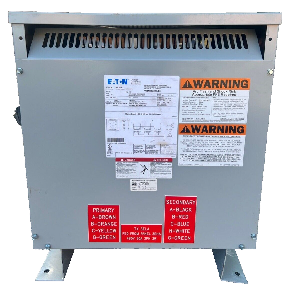 30KVA Eaton V48M28G30CUEE Transformer HV 480V LV 208Y/120V 3 Phase Indoor 3PH Weight: 336 lb