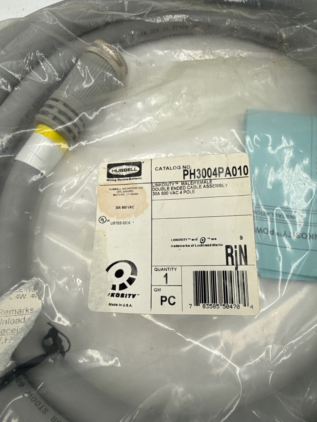 Hubbell LINKOSITY PH3004PA010 Cable Assembly 30A SNIG 600 VAC Max 4 Cond 10 ft