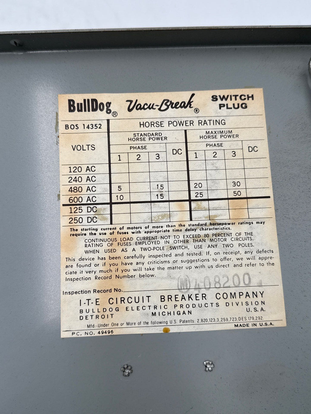 ITE BOS14352 Used