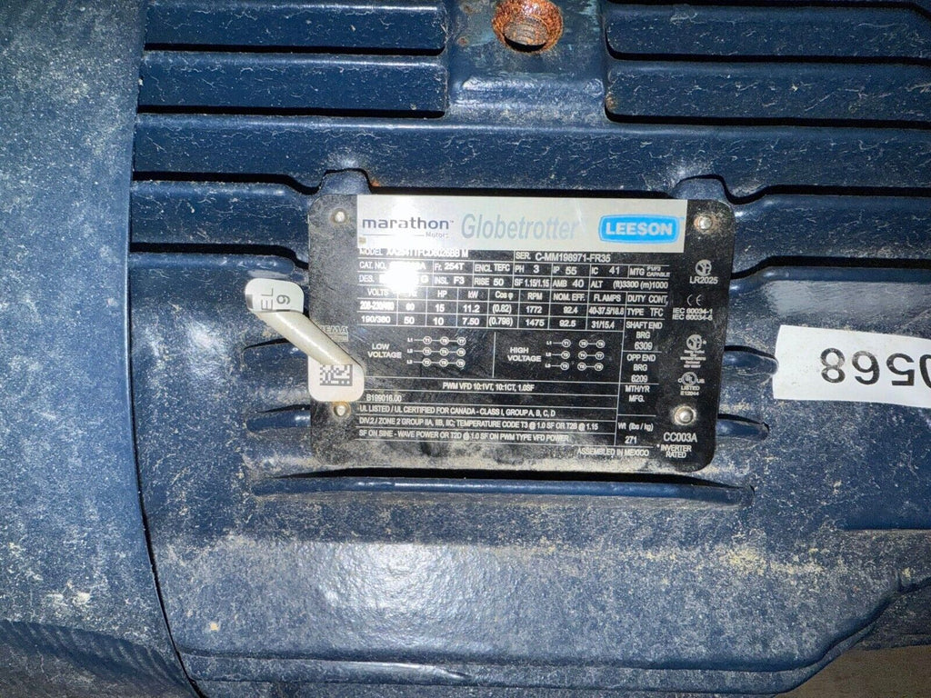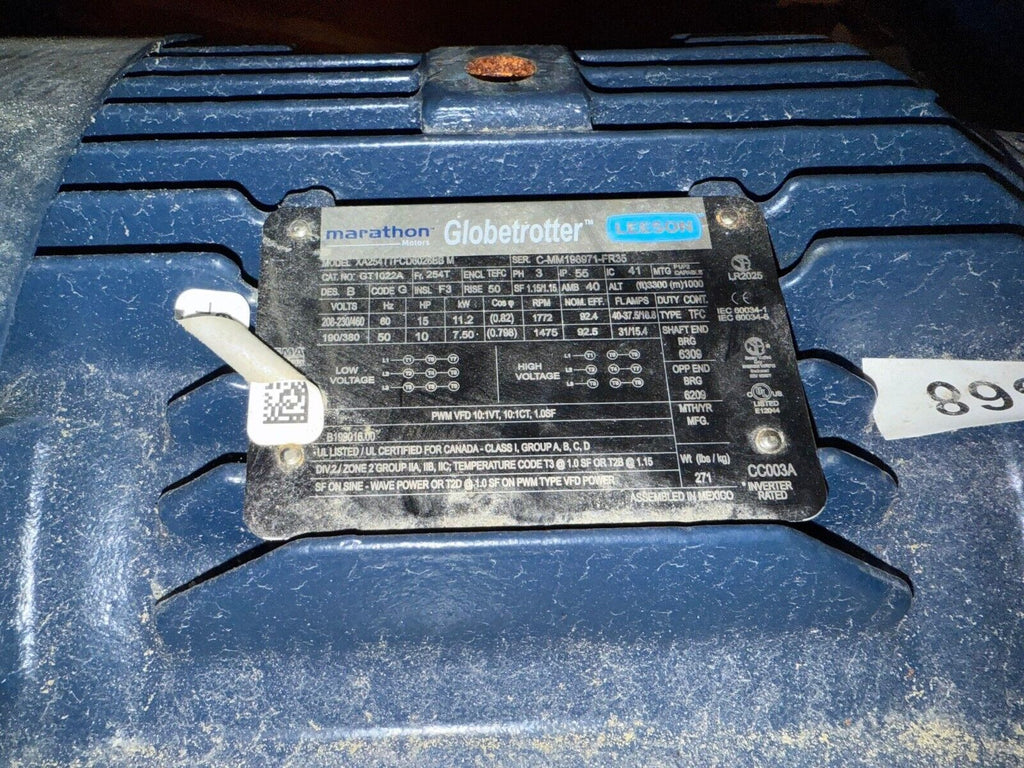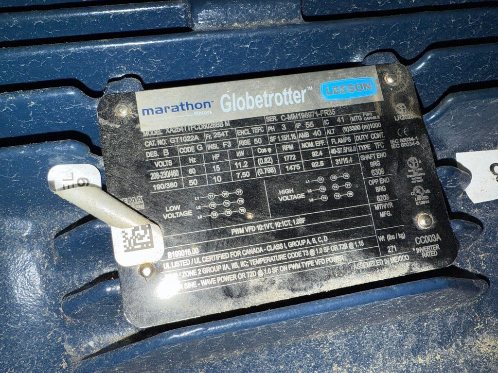 Marathon GT1022A Electric Motor 15HP 10HP 1800RPM 3PH 208-230/460V Frame 254T Encl TEFC NOS XA254TTFCD6026BB