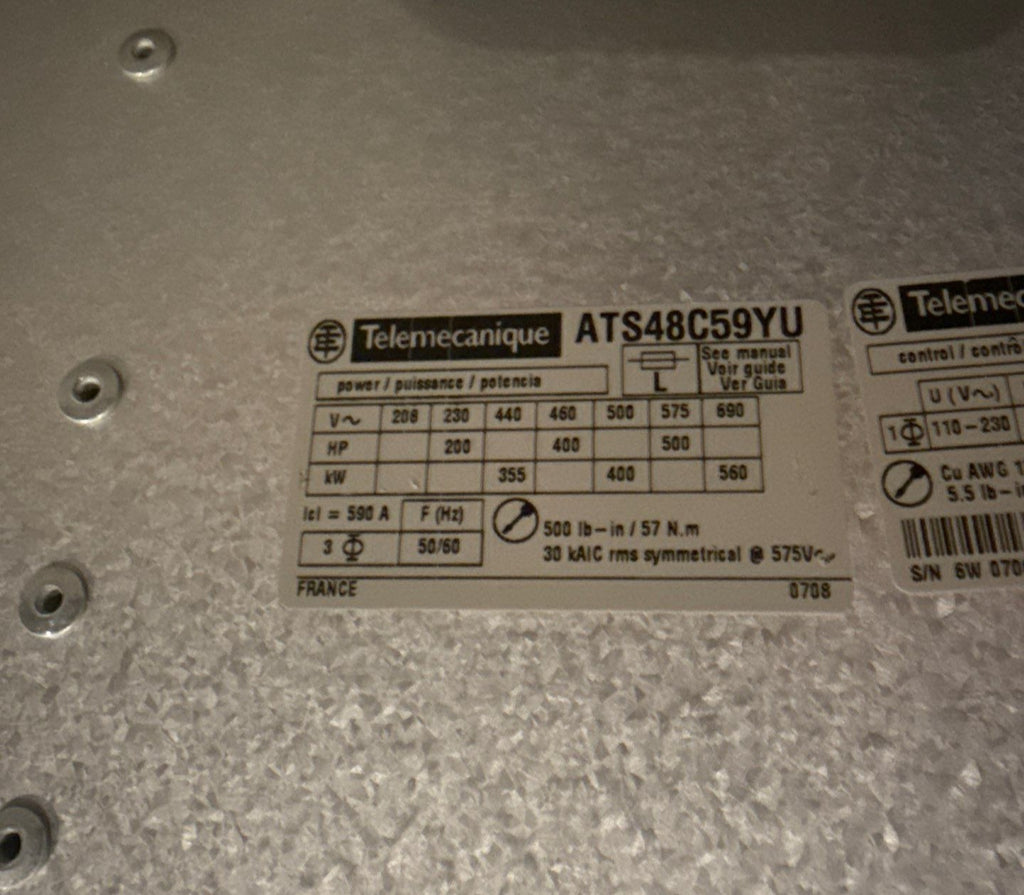 SCHNEIDER ELECTRIC ATS48C59YU UNTESTED FOR PARTS OR REPAIRS
