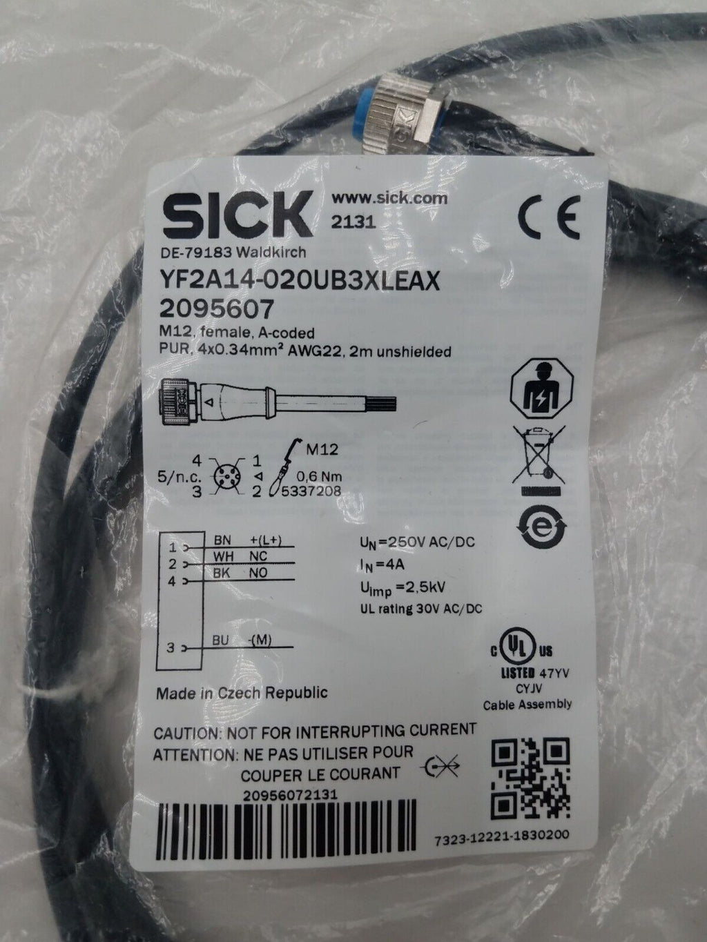 YF2A14-020UB3XLEAX SICK FEMALE CONNECTOR, FLYING LEADS, M12, 4-PIN, STRAIGHT, A-CODED, 2 METER, 4 WIRE, SCREW CONNECTION, BLACK Never