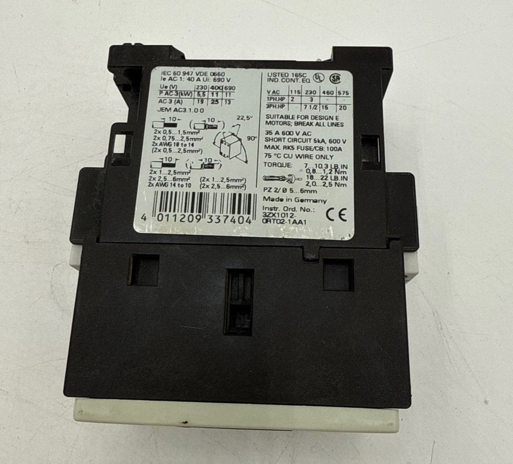 Siemens 3RT1026-1AC20 Contactor Size 0 25A 3P 600V 20HP Max Coil 24VAC