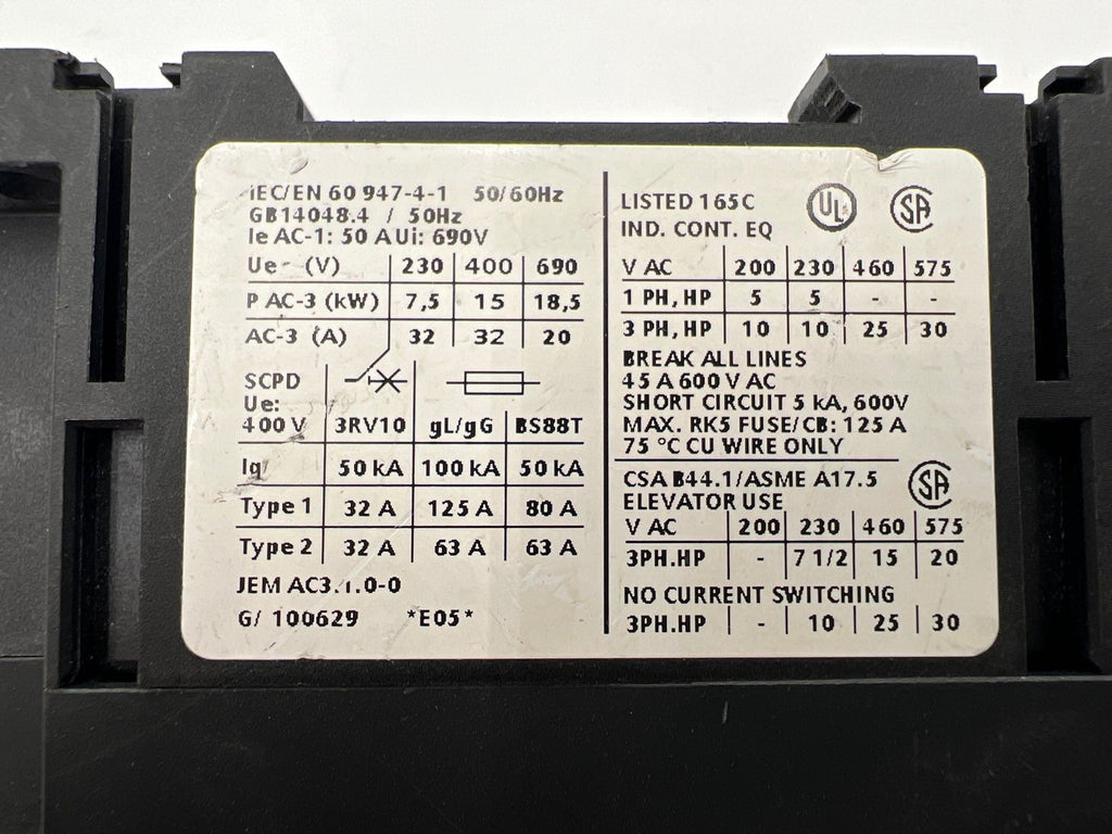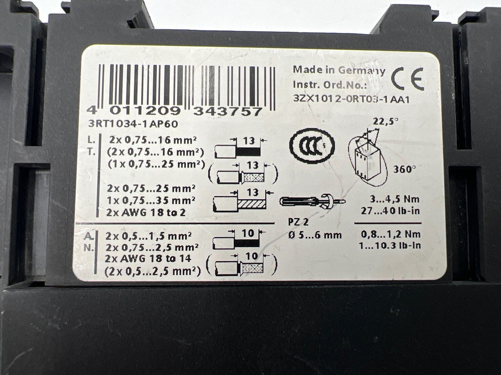 Siemens 3RT1034-1AP60 Contactor 80A 3P 24VDC Coil SIRIUS