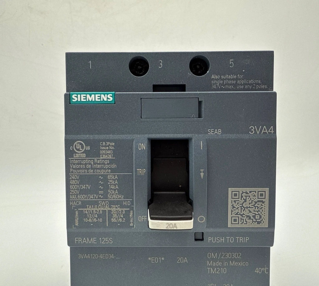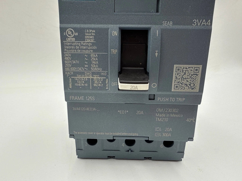 Siemens 3VA4120-4ED34-0AA0 Circuit Breaker 20A 3P 600V 3VA41 20 Amp 3 Pole