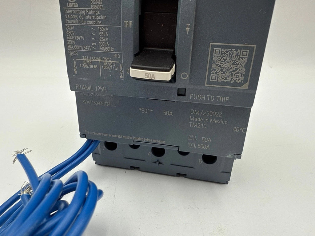 Siemens 3VA4150-6ED34-0AA0 Circuit Breaker 50A 3P 600V 3VA9978-0BL32 Shunt Trip 110-127VAC/DC