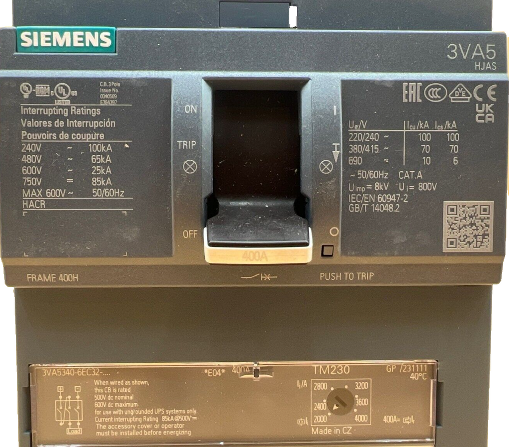 Siemens 3VA5340-6EC32-0AA0 Bolt On Circuit Breaker 400A 3P 600V 3PH 400 Amp