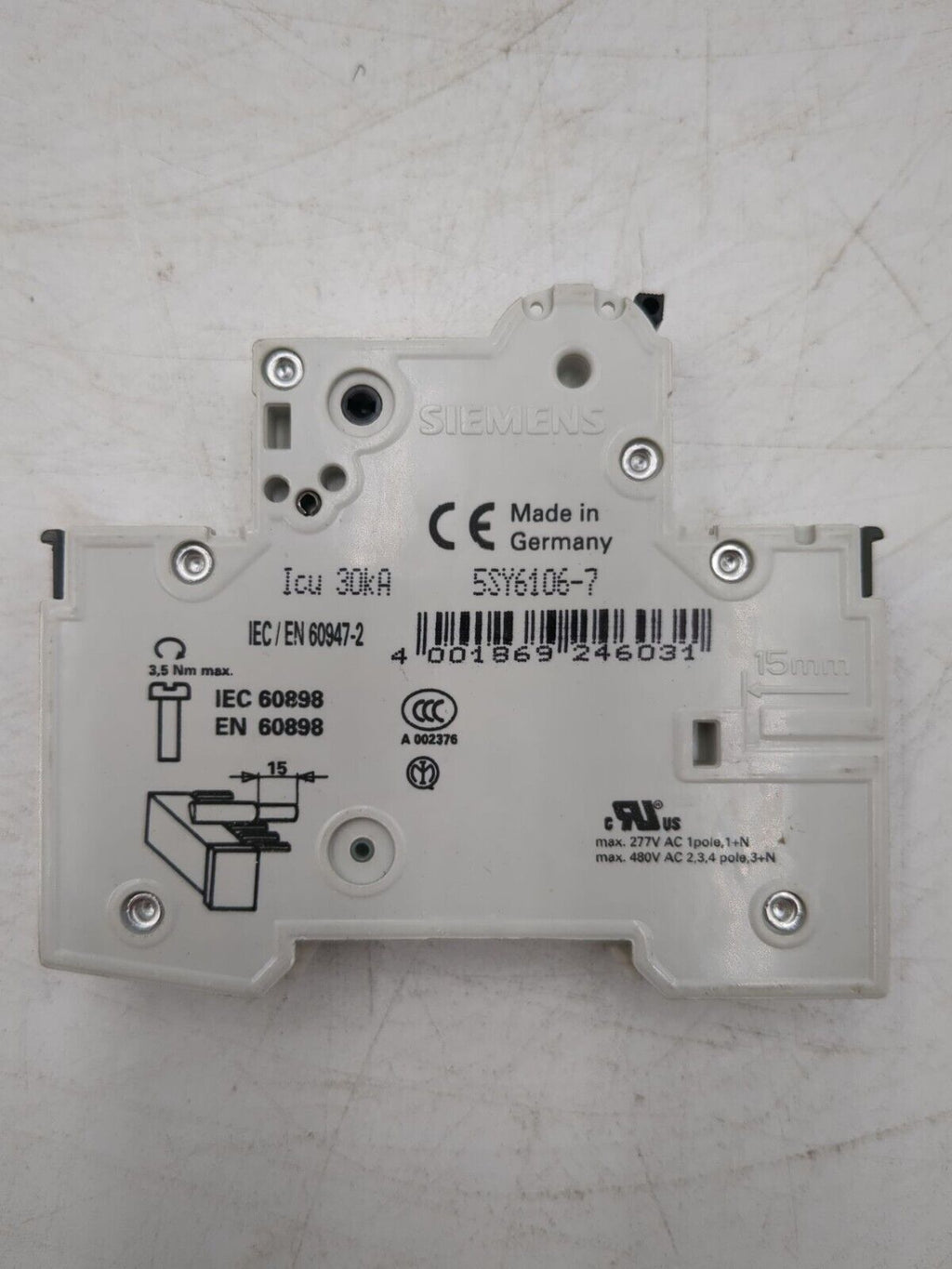 Siemens 5SY6106-7 MCB C6, 1 Pole, 6 Amp, 230/400V,