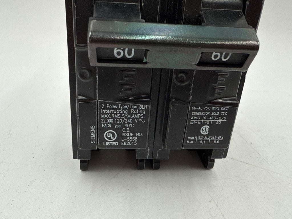 Siemens B260H Bolt On Circuit Breaker 60A 2P 120/240V 1PH 22kA BLH 60 Amp 2 Pole