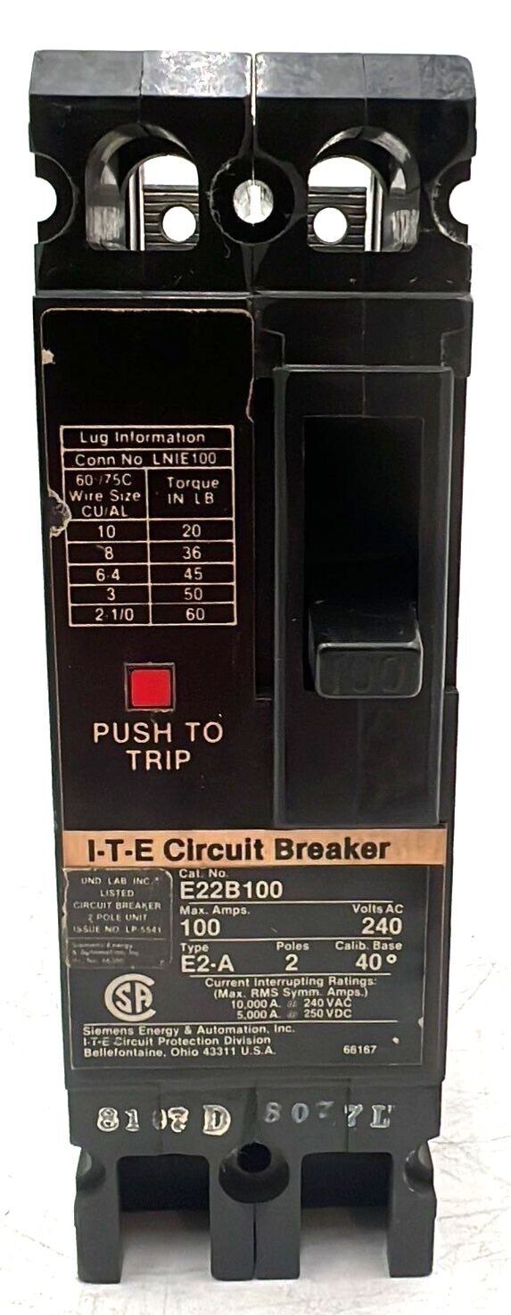 Siemens E22B100 100A 240V 2 Pole Circuit Breaker