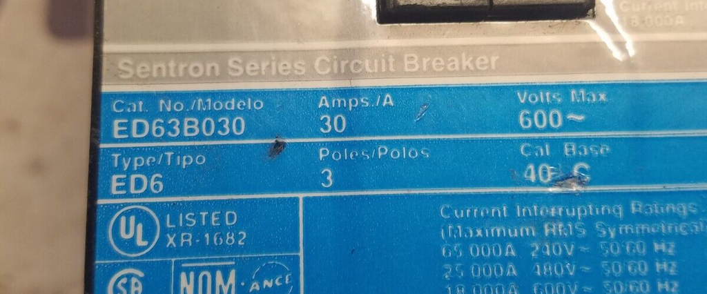 Siemens ED63B030 3 pole 30 Amp 600 volt