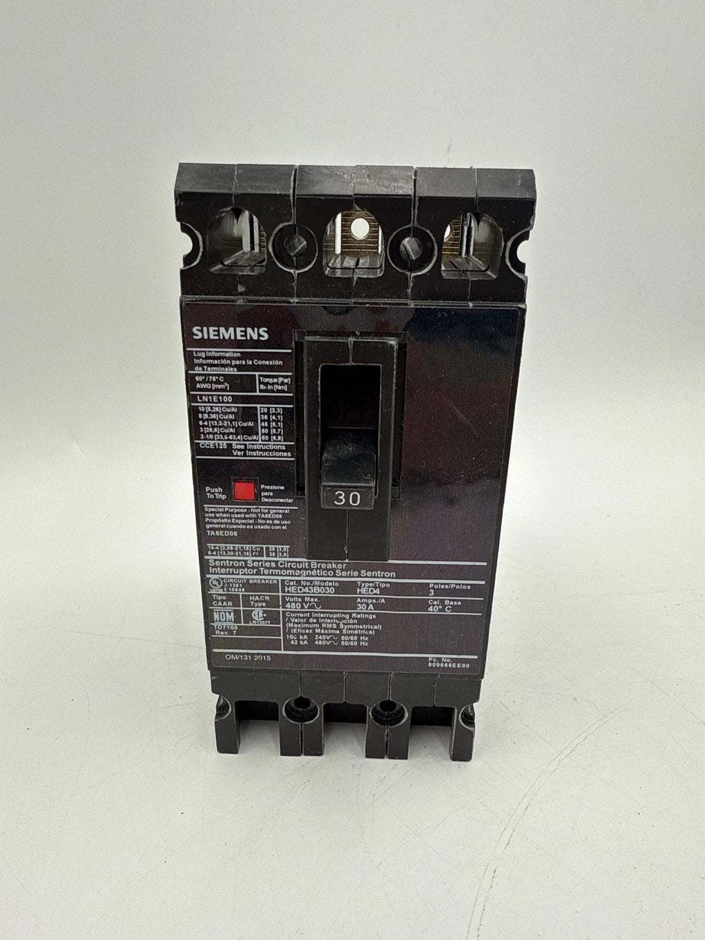 Siemens HED43B030 Circuit Breaker 30A 3P 480V 3PH 30 Amp 3 Pole HED4