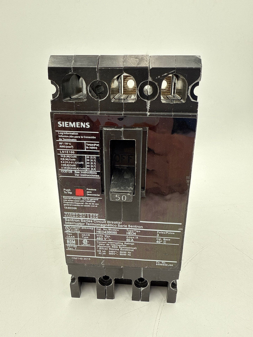 Siemens HED43B050 Circuit Breaker 50A 3P 480V 3PH 50 Amp HED4 50 Amp 3 Pole
