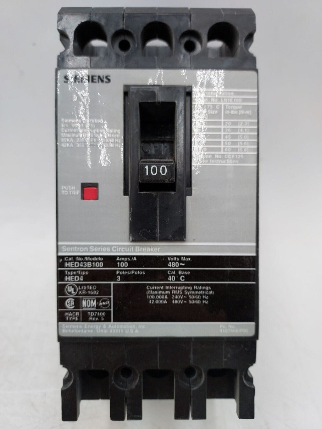 SIEMENS HED43B100 Circuit Breaker 100A 3P 480V 3PH HED4 100 Amp 3 Pole