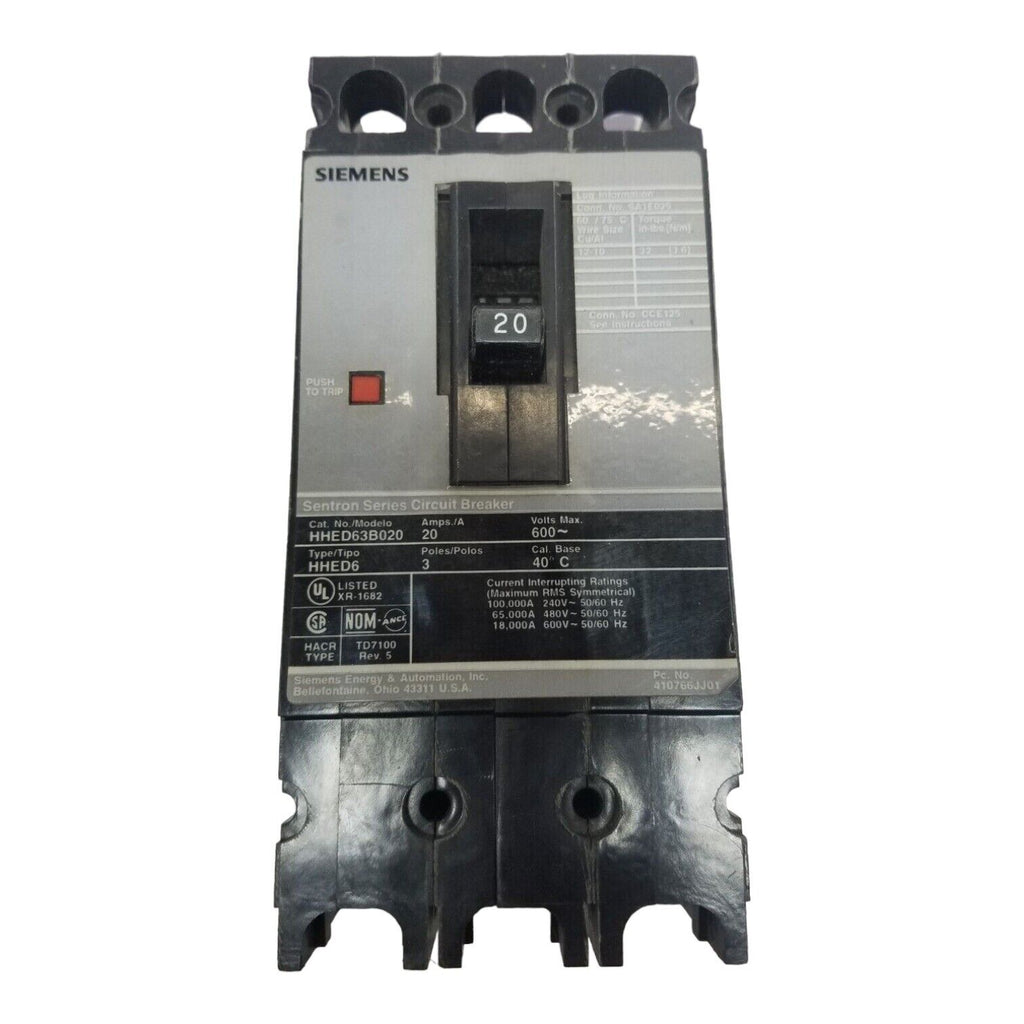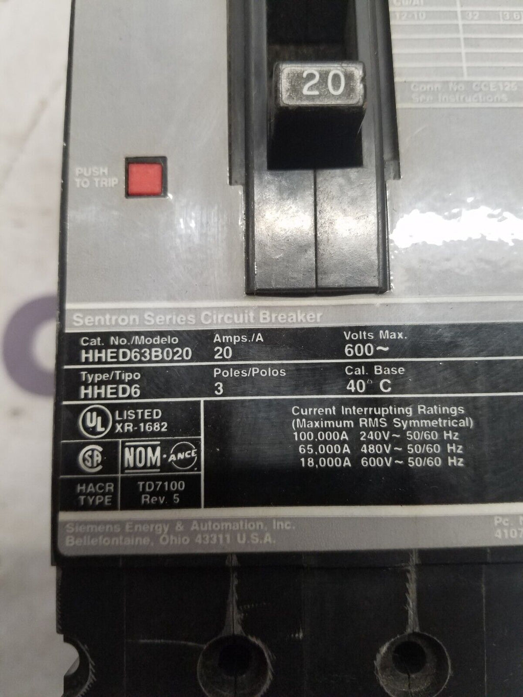 Siemens HHED63B020 3 pole 20 Amp 600 volt